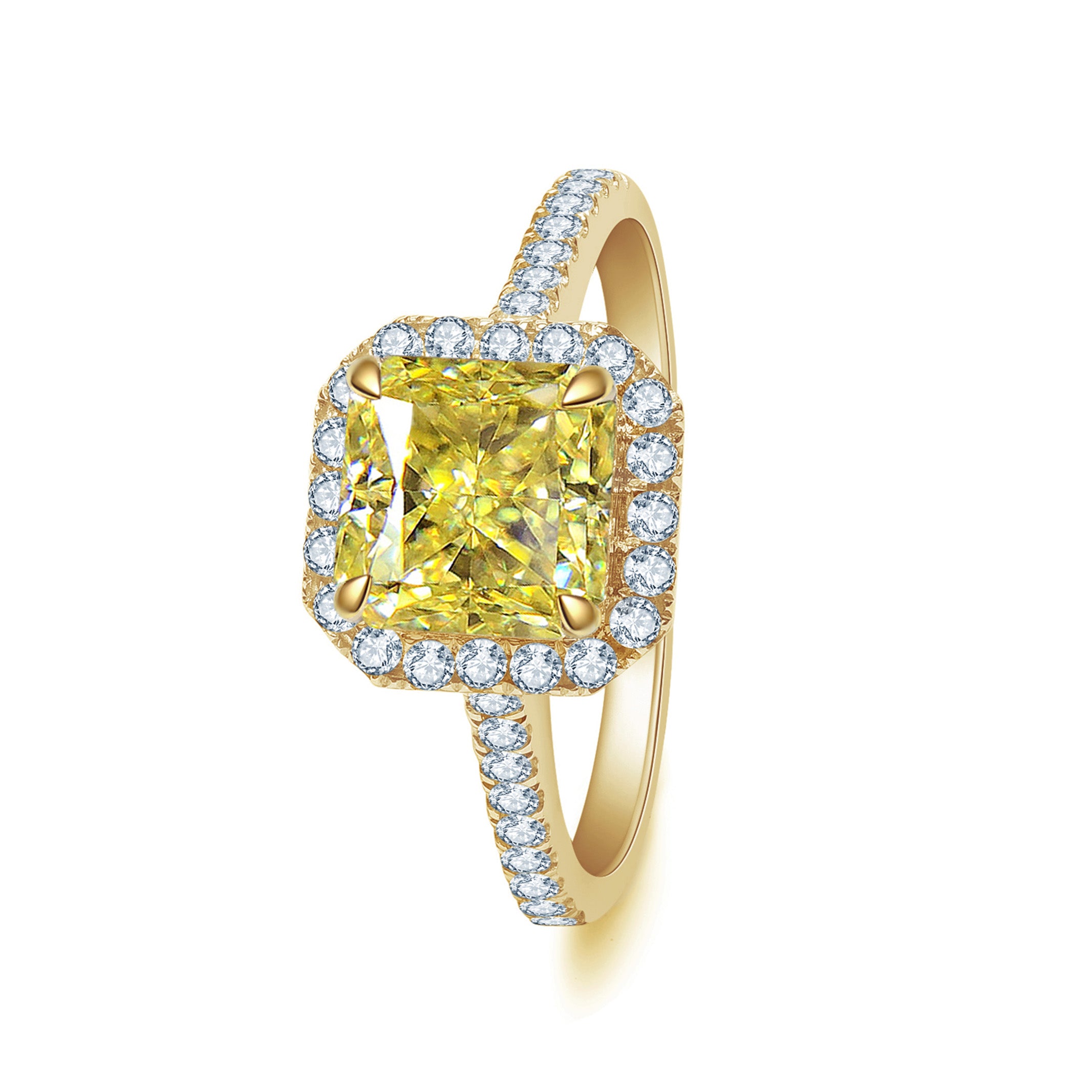 イエローモアサナイト ラディアントカット ヘイロー リング RI440YG