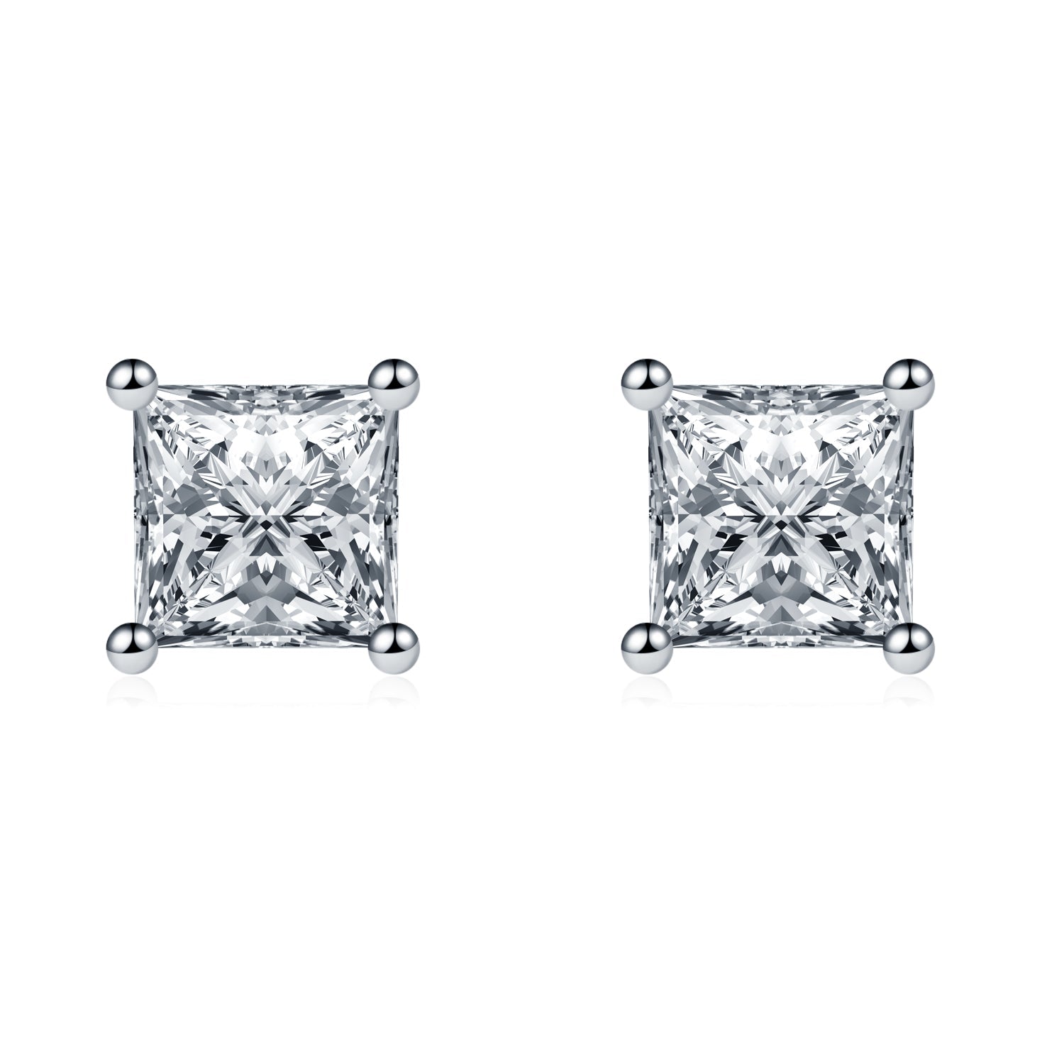 【即納】計2.0カラット シンプル プリンセスカット スタッド ピアス ER078