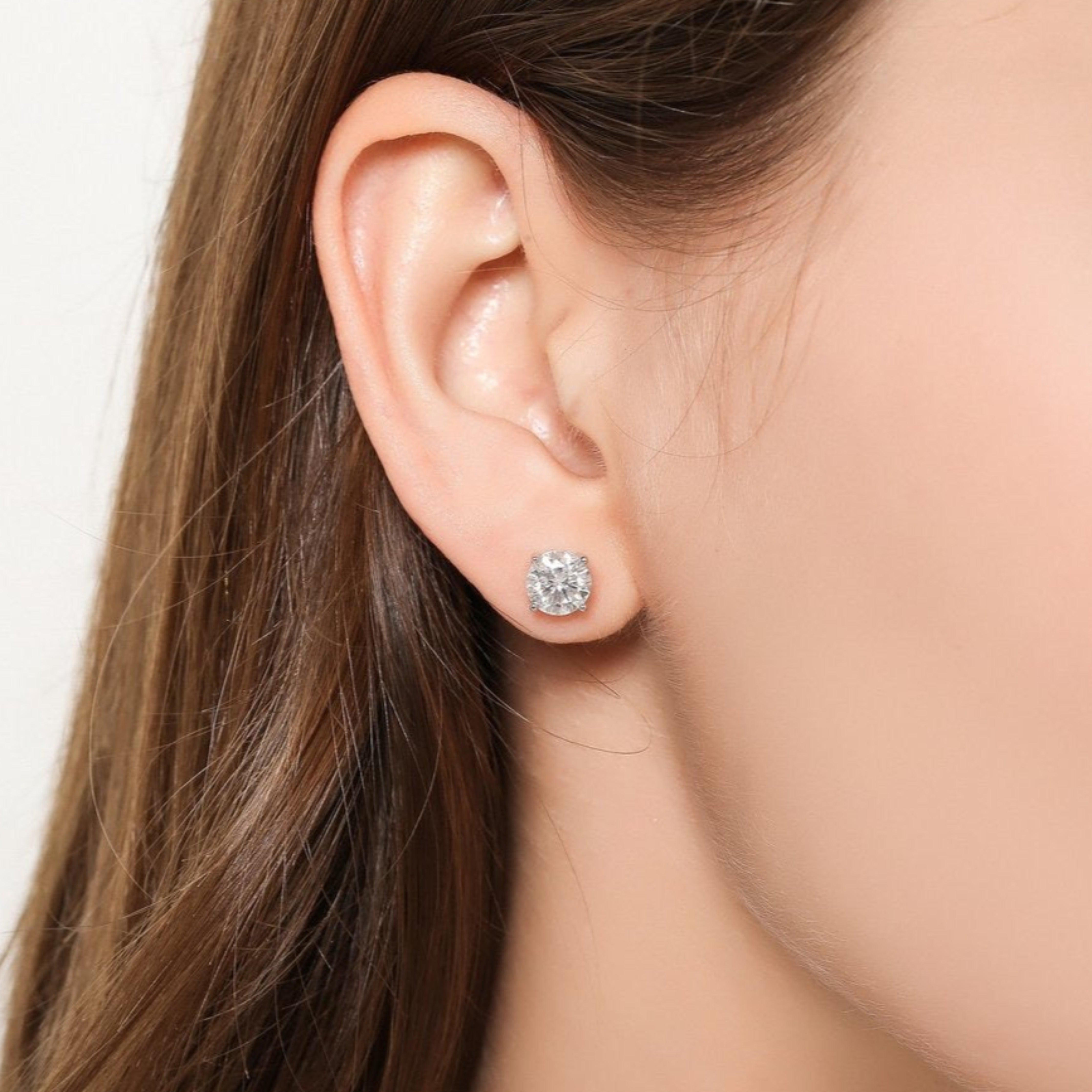 モアサナイト:ラウンドカット、両耳計1〜6.0カラットよりお選びいただけます。