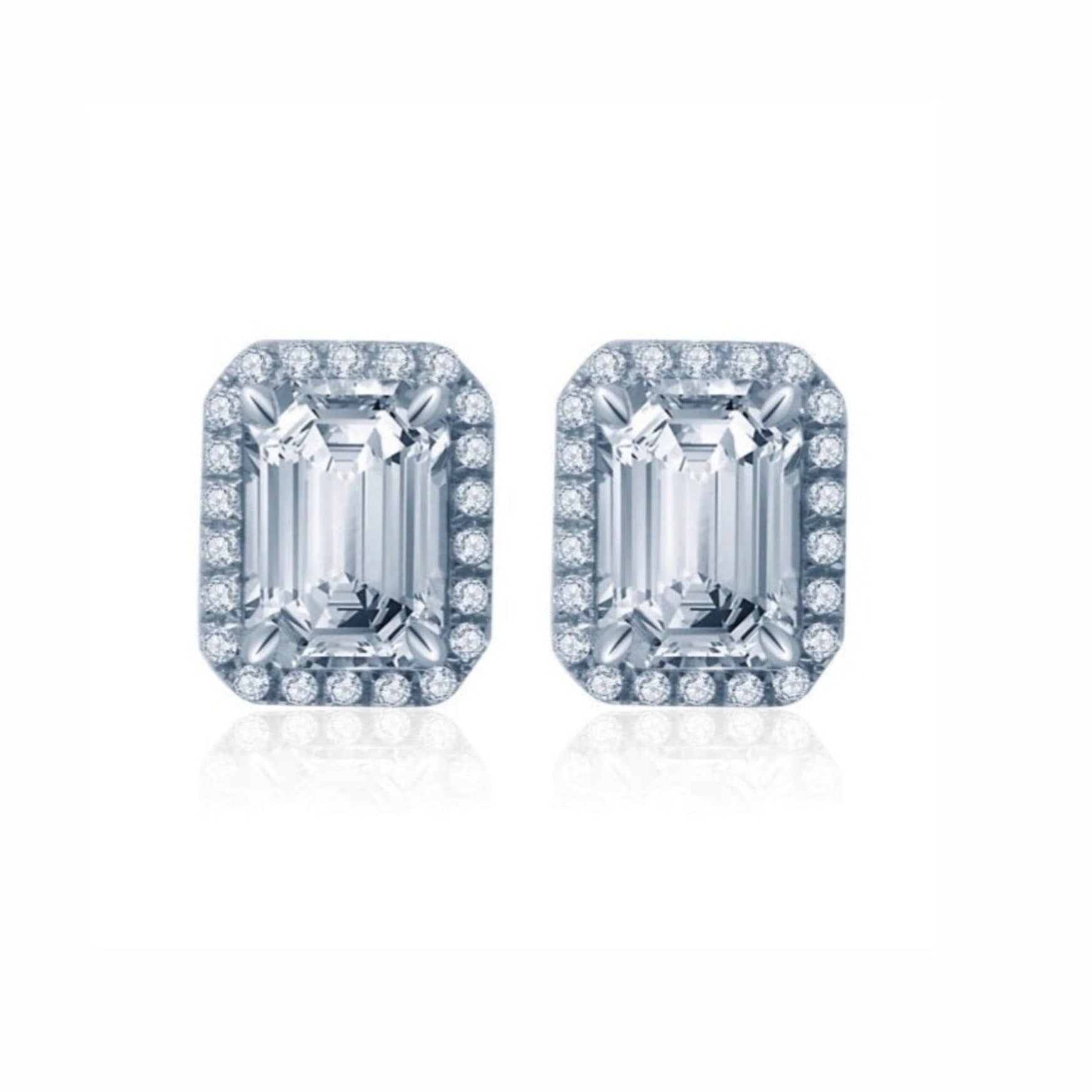 エメラルドカット ヘイロー スタッド ピアス ER044