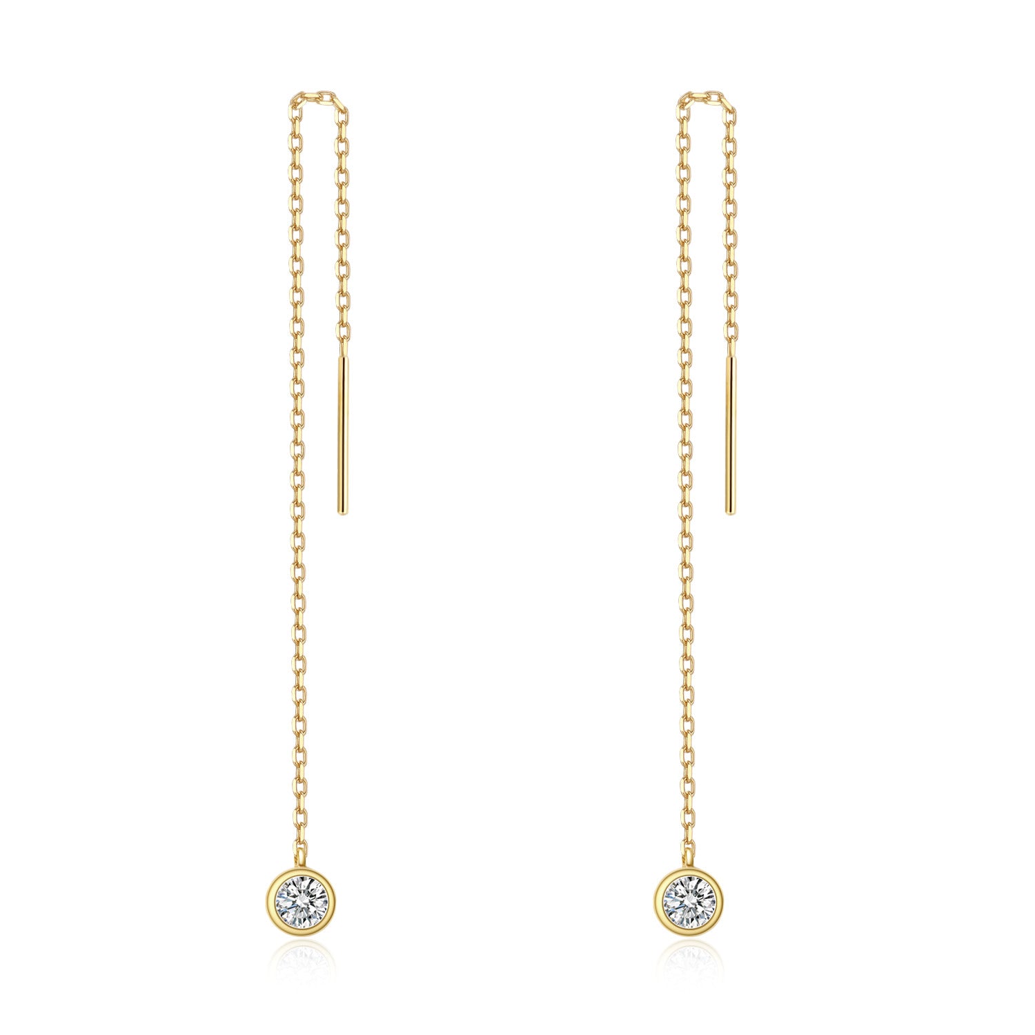 【即納】【Minimal Collection】計0.2カラット ラウンド 覆輪 ベゼルセッティング チェーン ピアス ER072YG