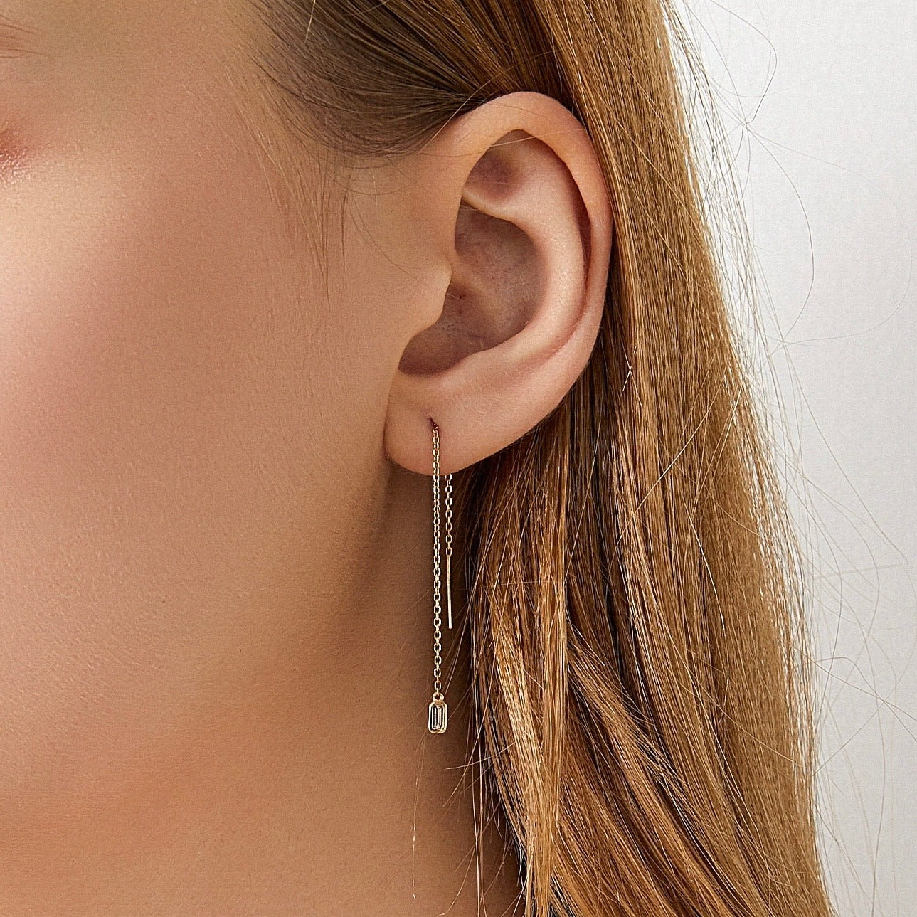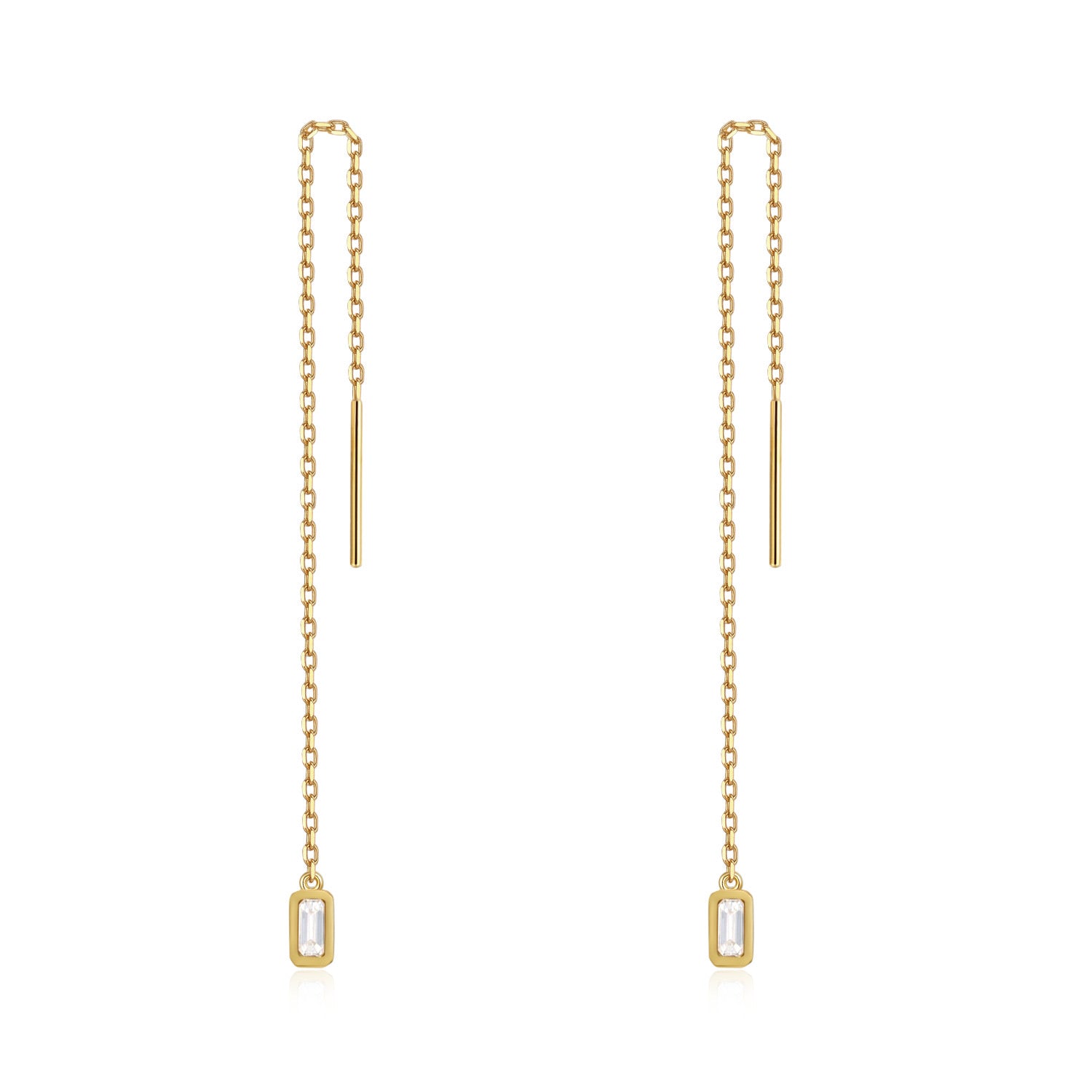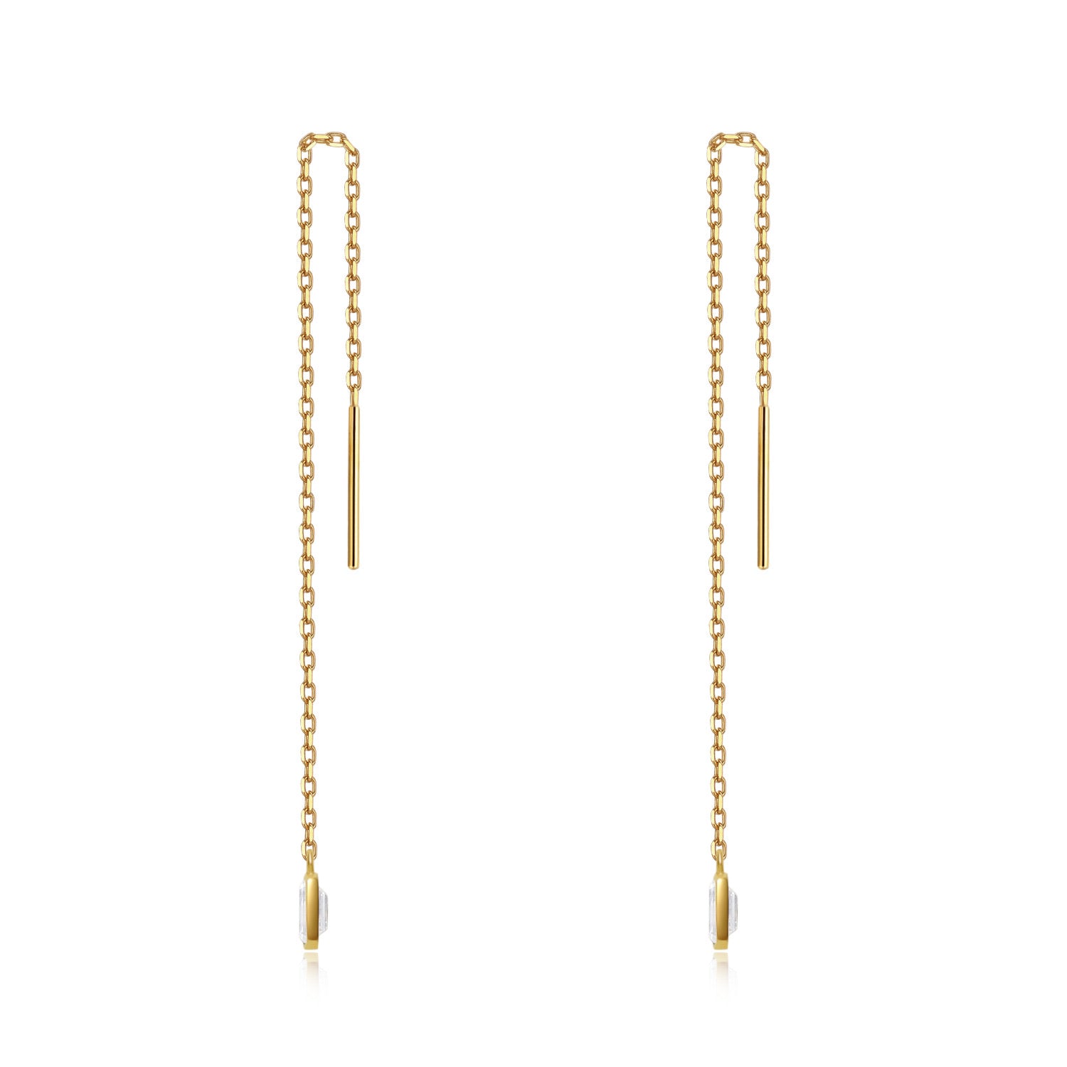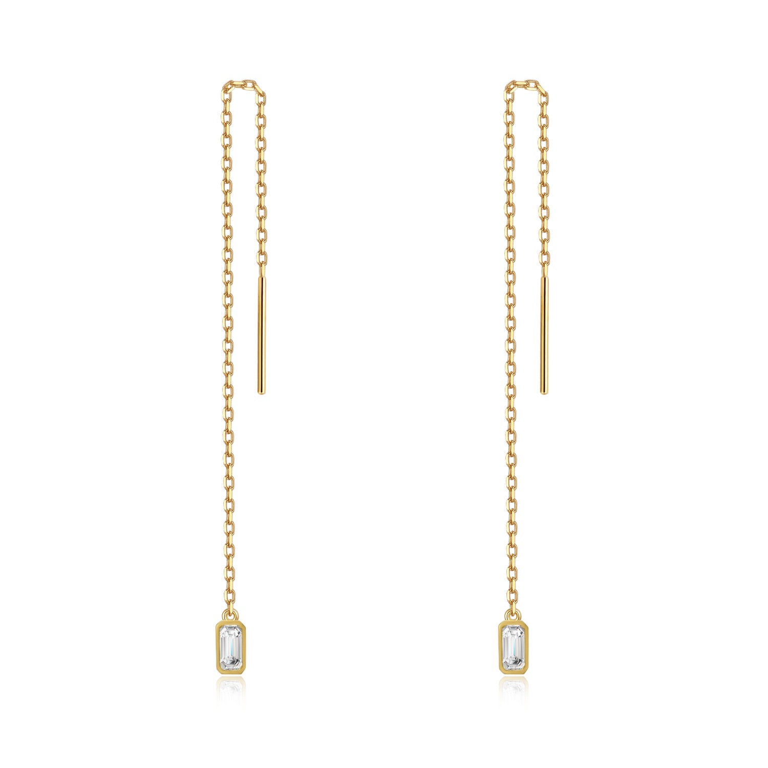 【即納】【Minimal Collection】計0.2カラット エメラルドカット 覆輪 ベゼルセッティング チェーン ピアス ER100YG