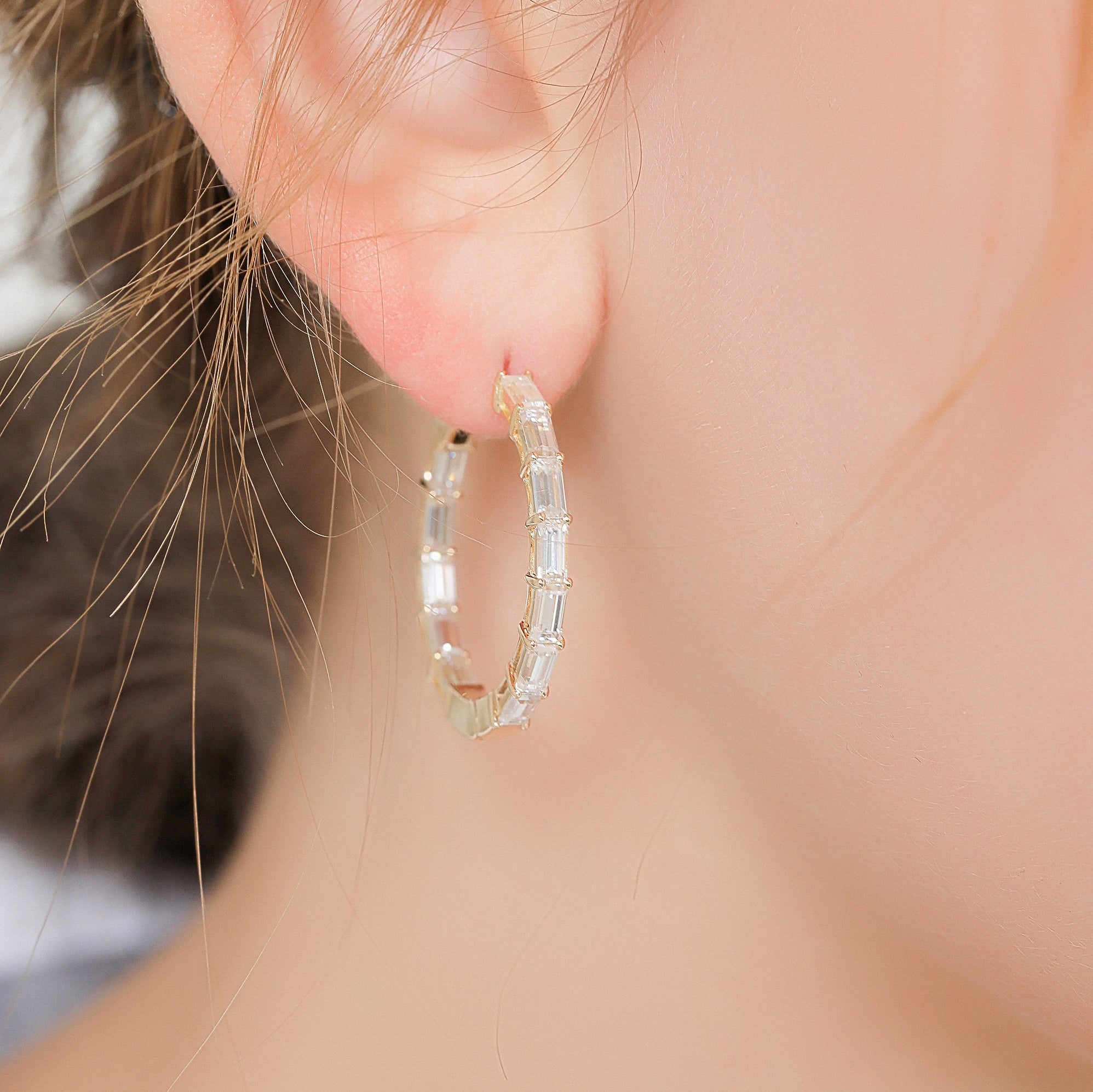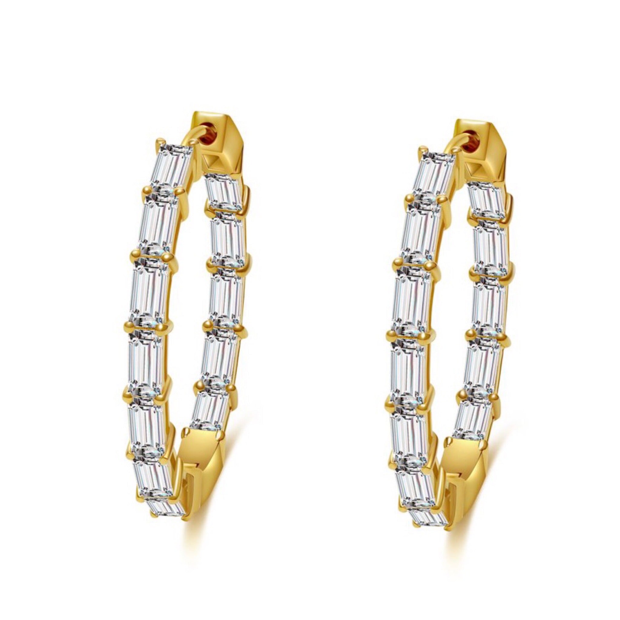 計2.4カラット バゲットカット フープ ピアス ER104YG