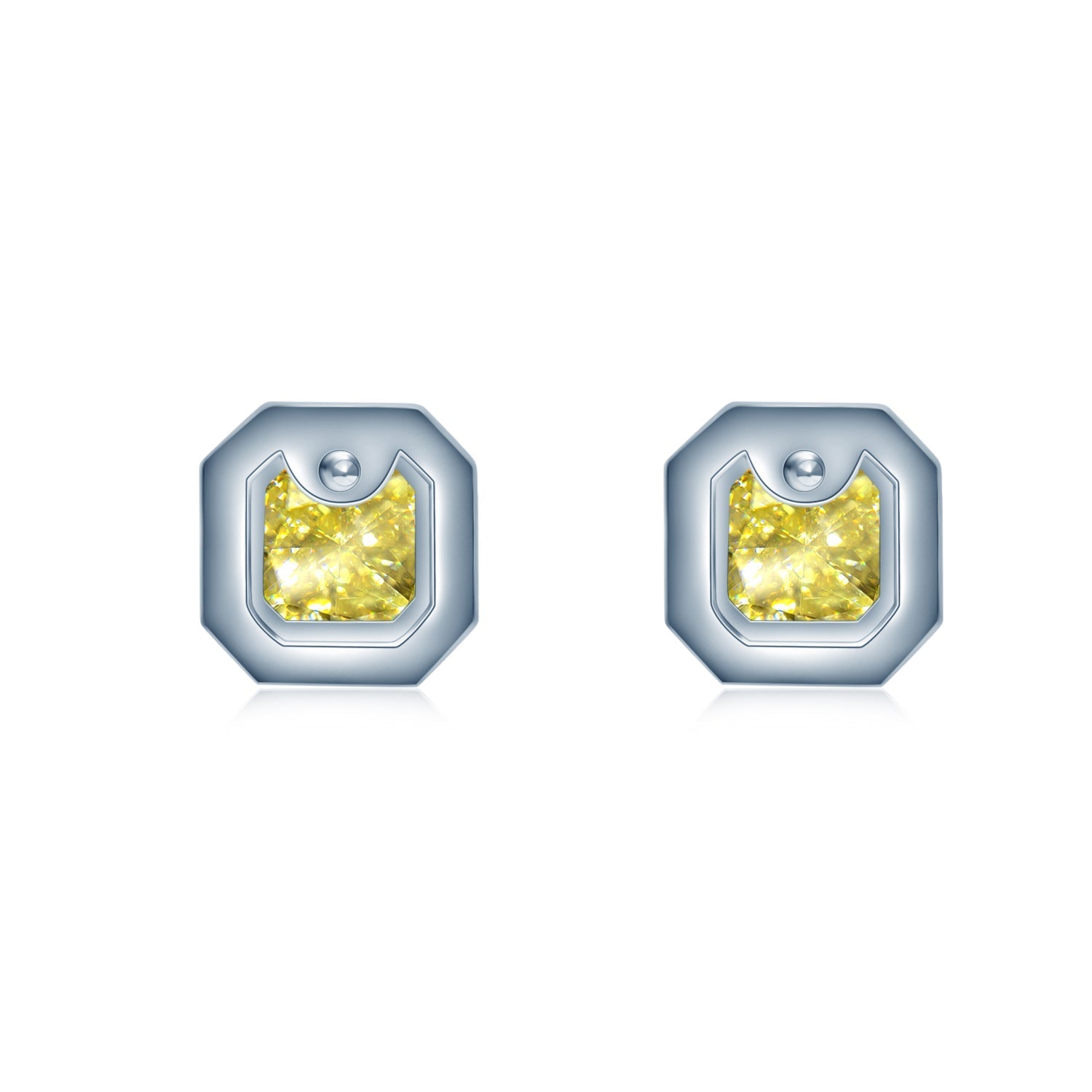 センターストーン:ラディアントカット、イエローモアサナイト、両耳計1.0カラットまたは2.0カラットよりお選びいただけます。