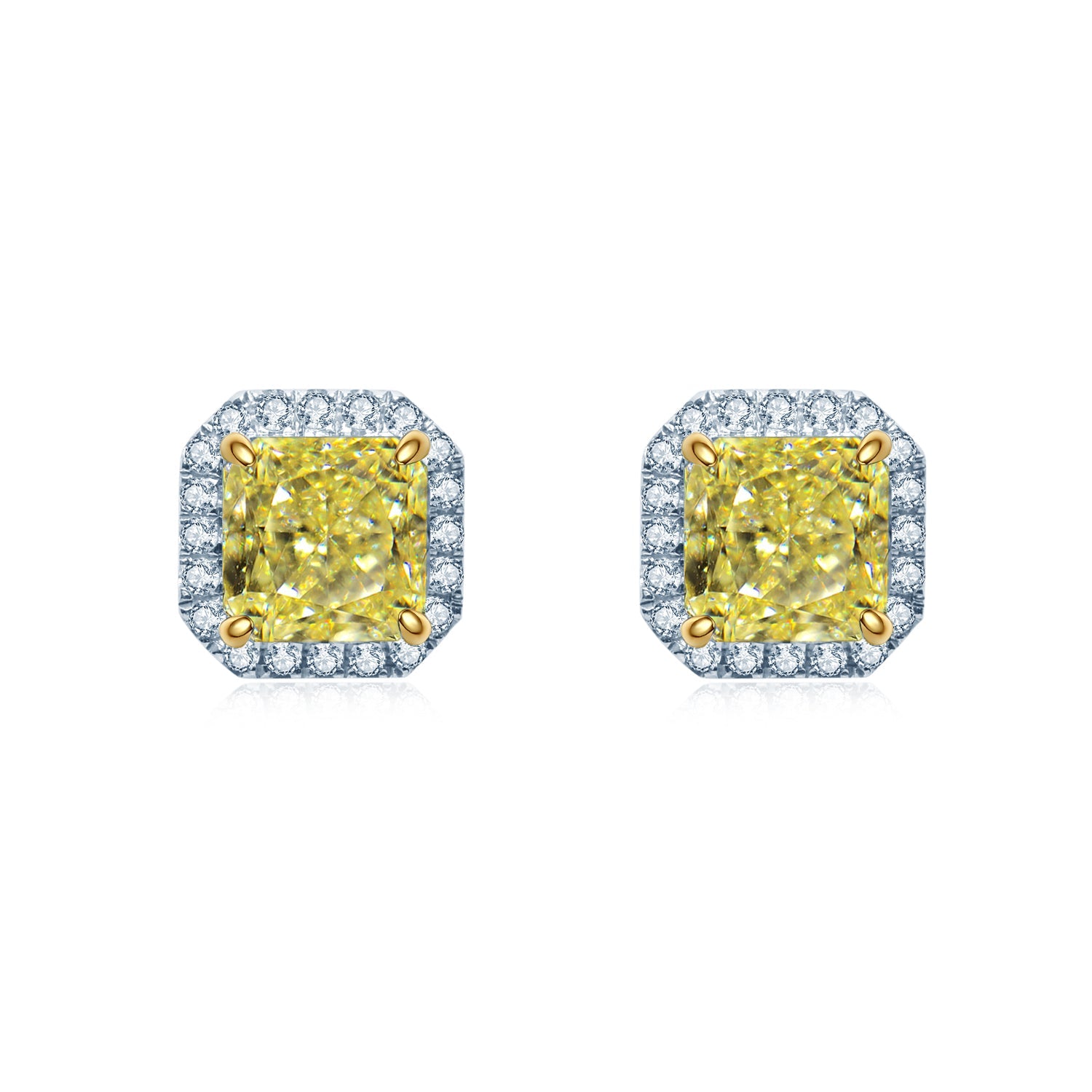 【即納】イエローモアサナイト ラディアントカット ヘイロー ピアス ER116