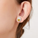 イエローモアサナイト クッションカット ダブル ヘイロー ピアス ER117