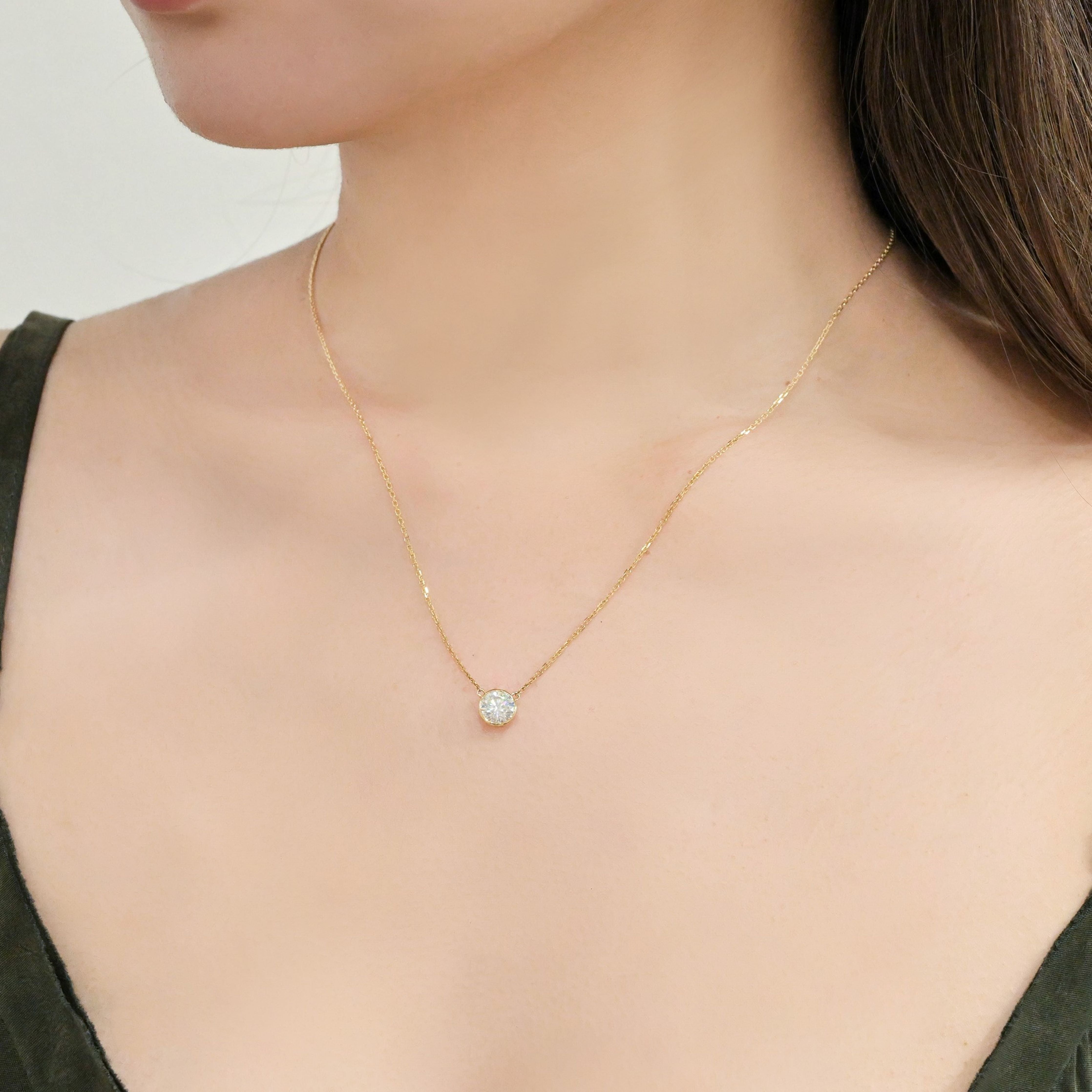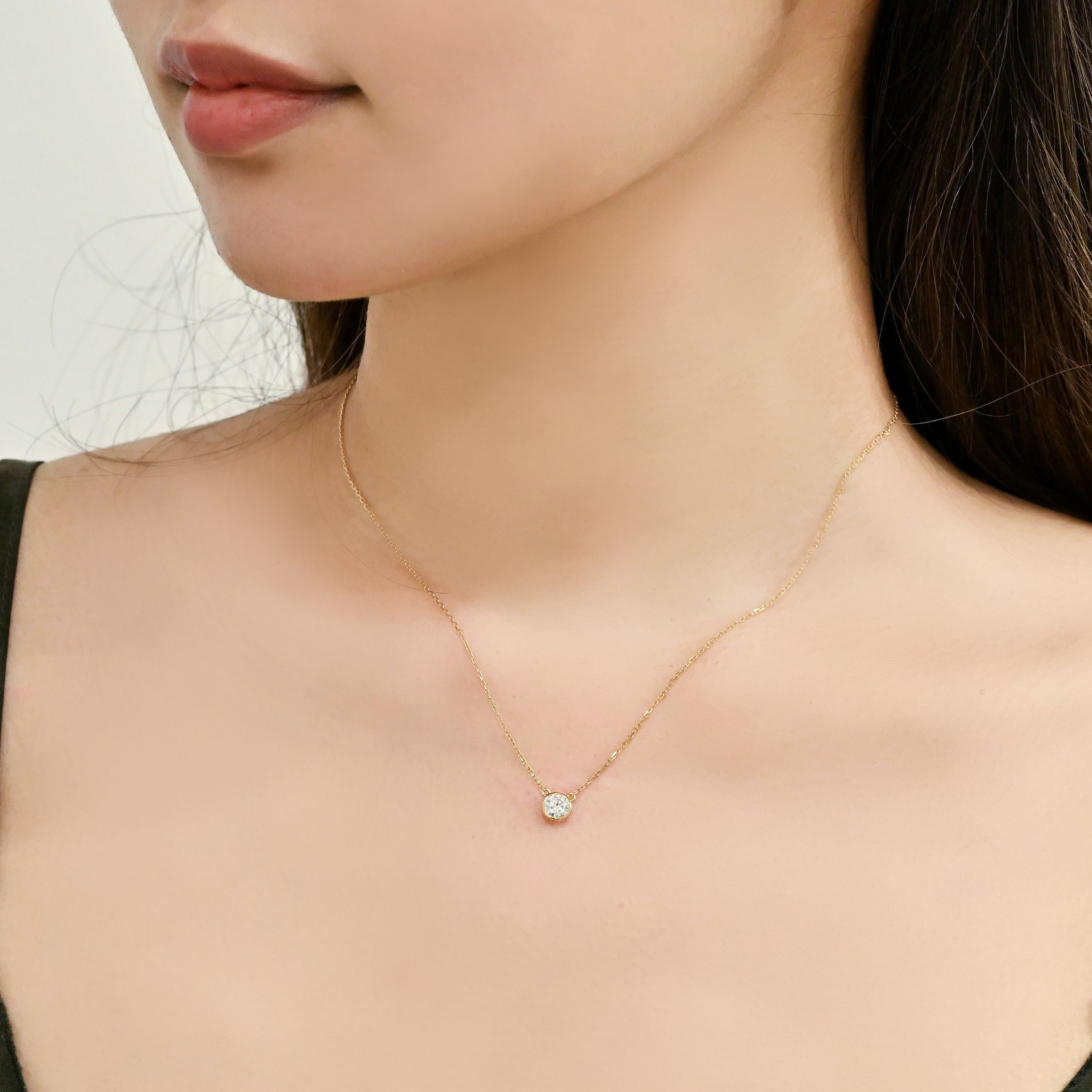 【即納】ラウンド 覆輪 ベゼルセッティング ネックレス NE009YG