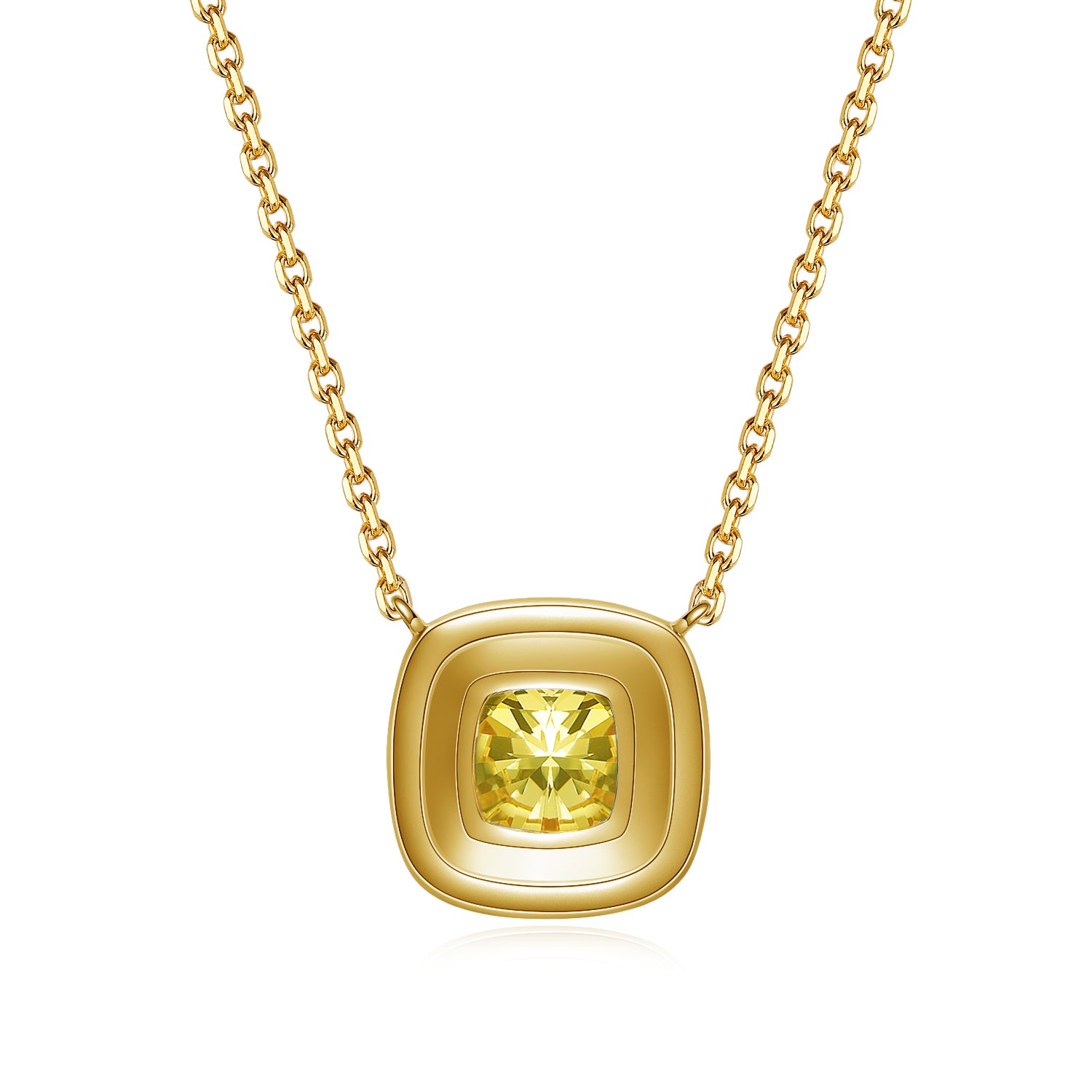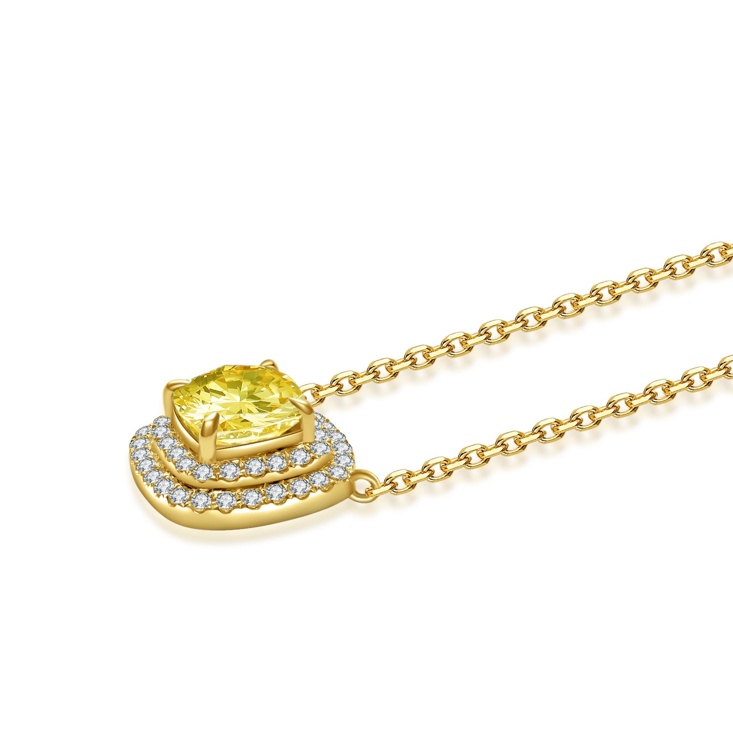 イエローモアサナイト クッションカット ダブル ヘイロー ネックレス NE047YG