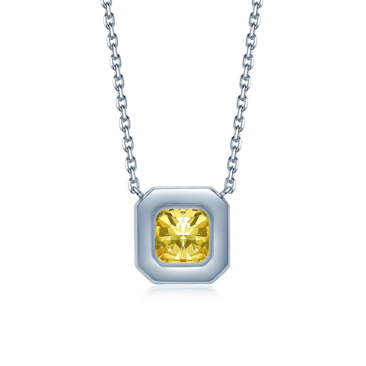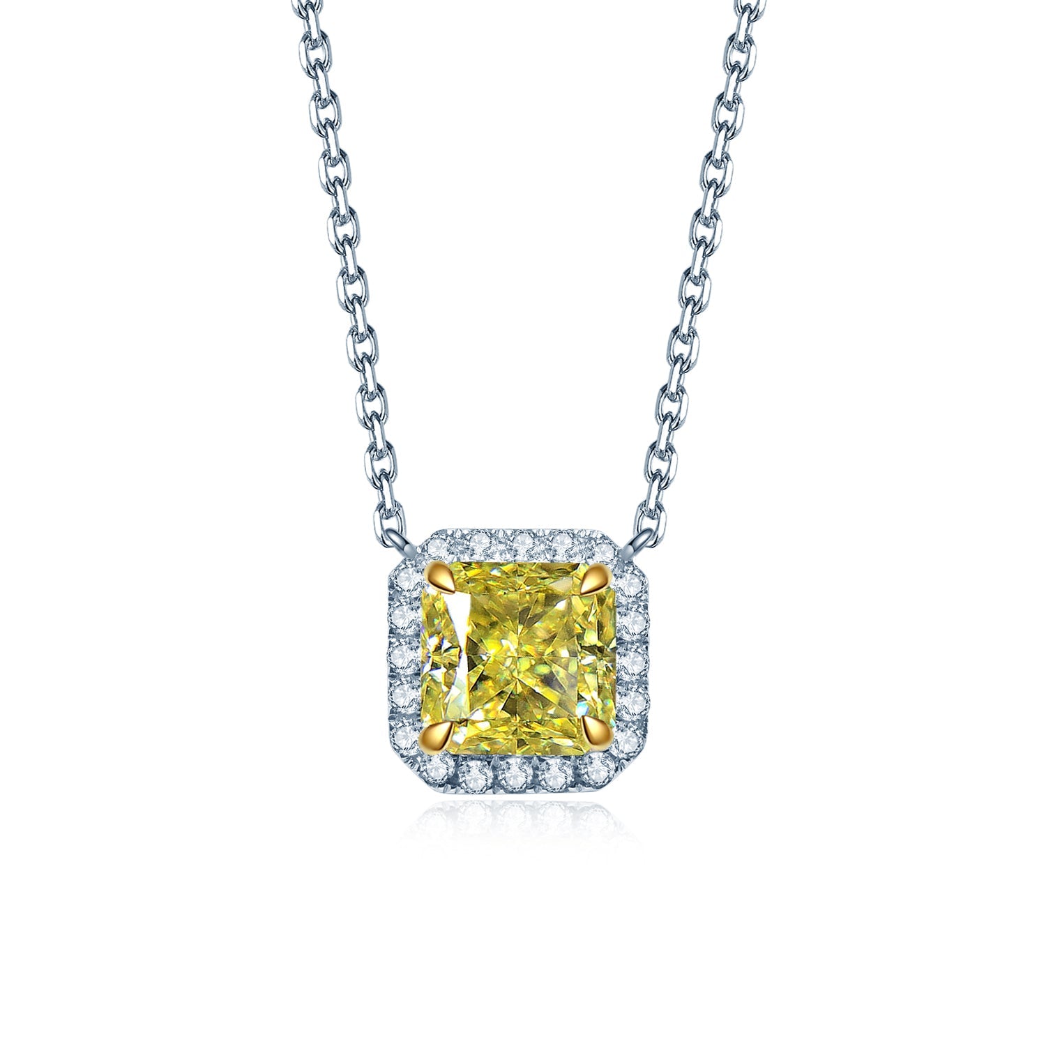 【即納】イエローモアサナイト ラディアントカット ヘイロー ネックレス NE090