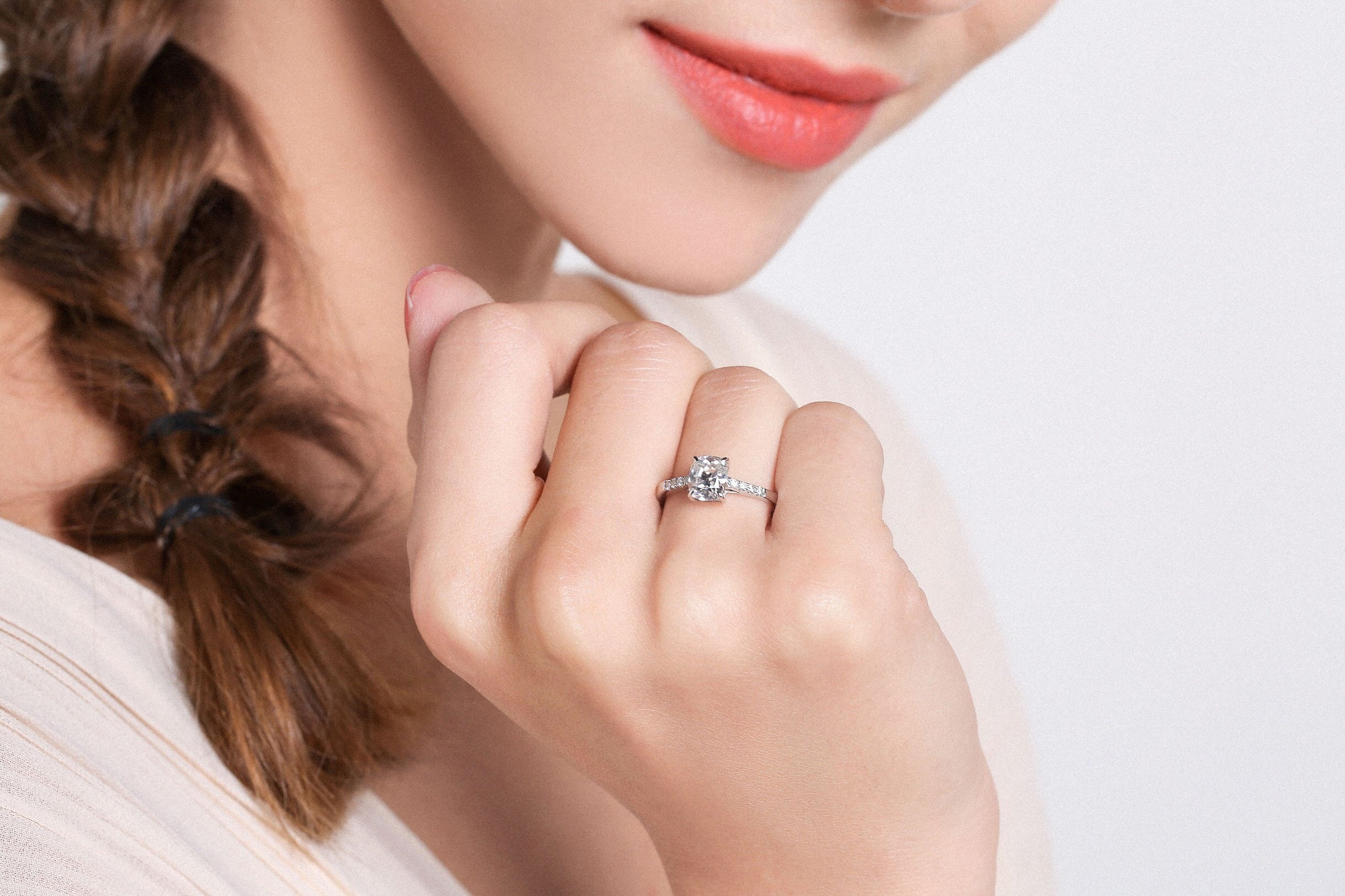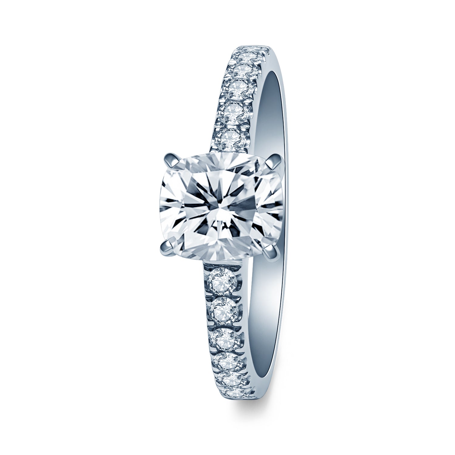 センターストーン:クッションカット、モアサナイト1.0カラットまたは3.0カラットよりお選びいただけます。