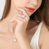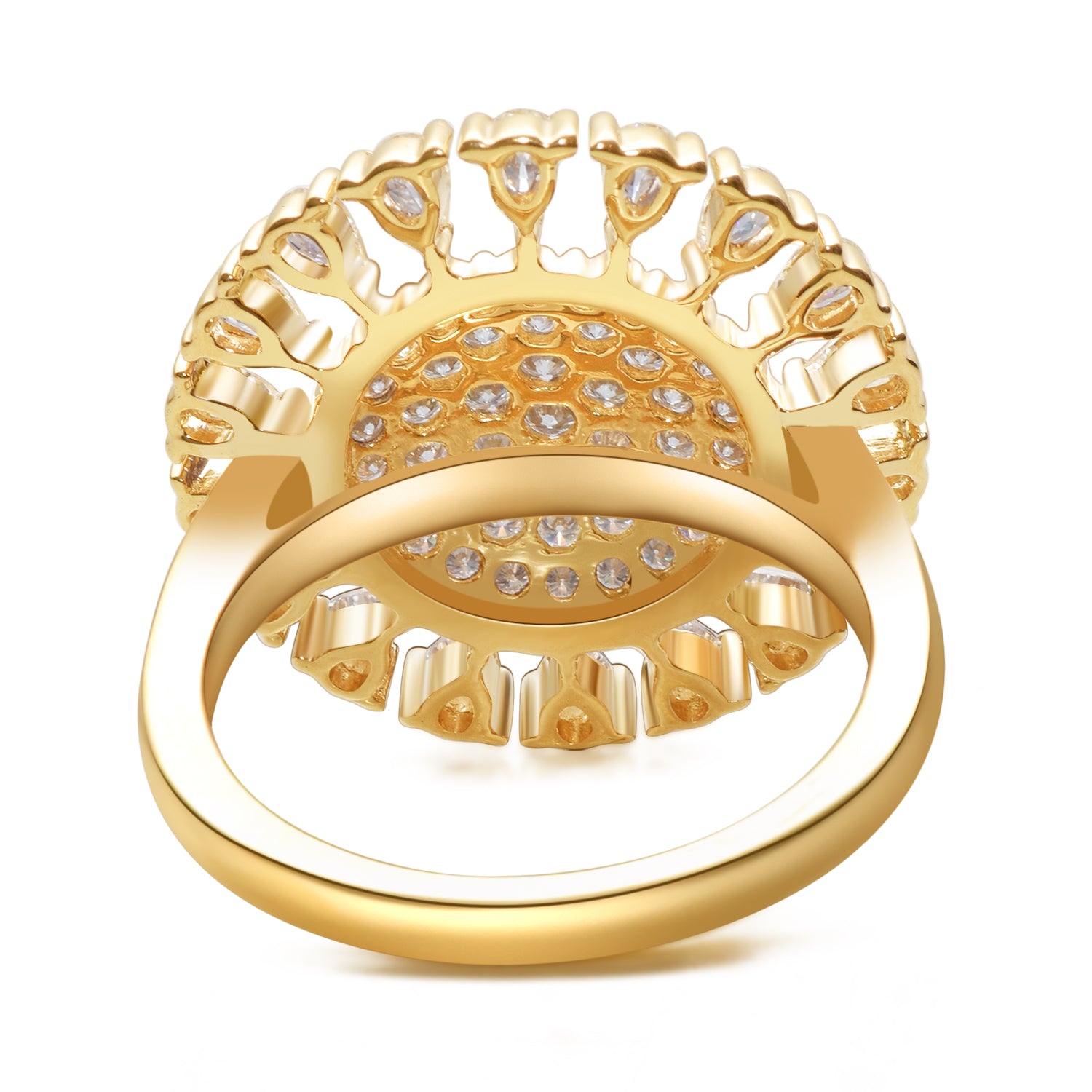 小粒のペアシェイプで麗しい花びら、中央のパヴェがまばゆく輝き、ひまわりを愛らしく表現。