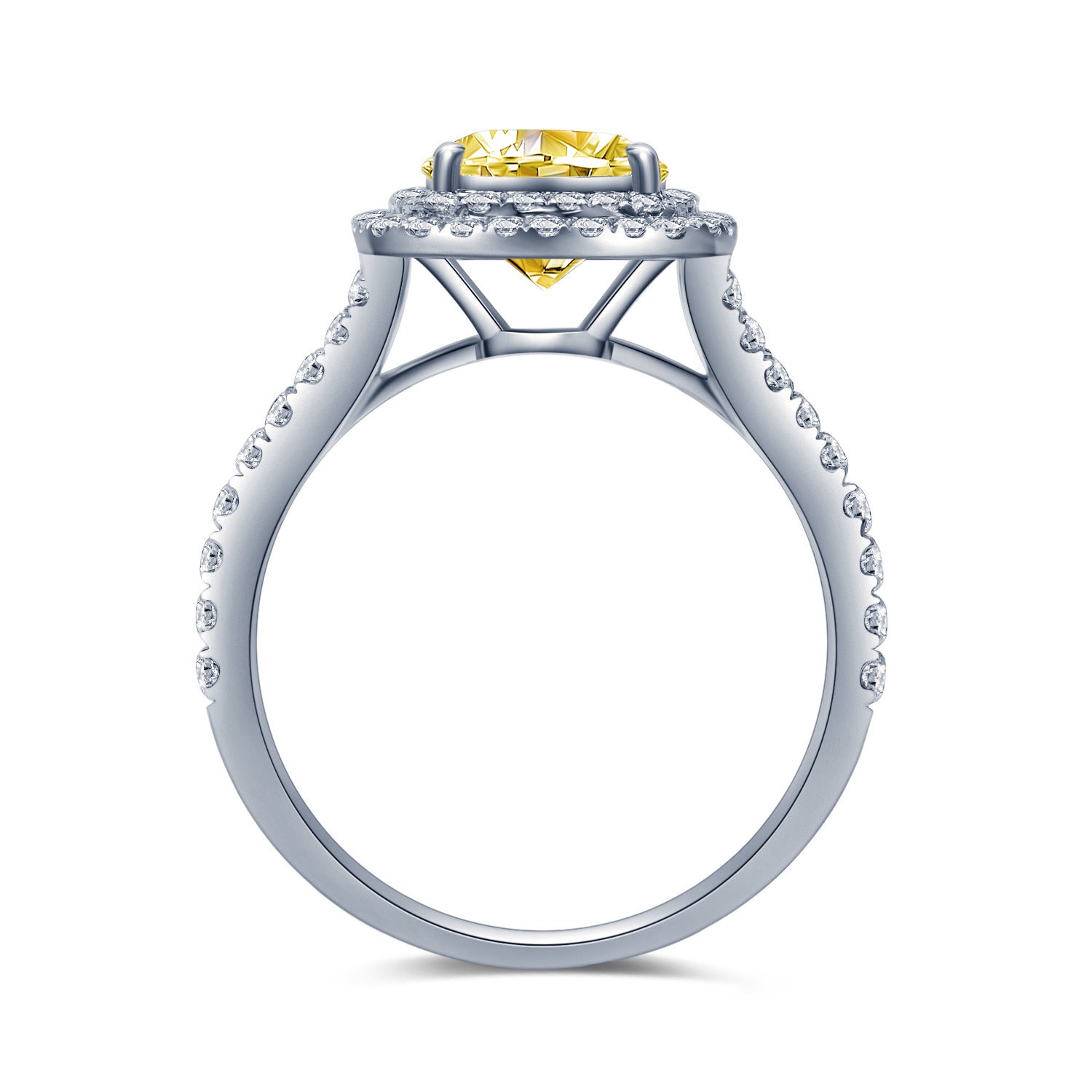【即納】イエローモアサナイト クッションカット ダブル ヘイロー リング RI294