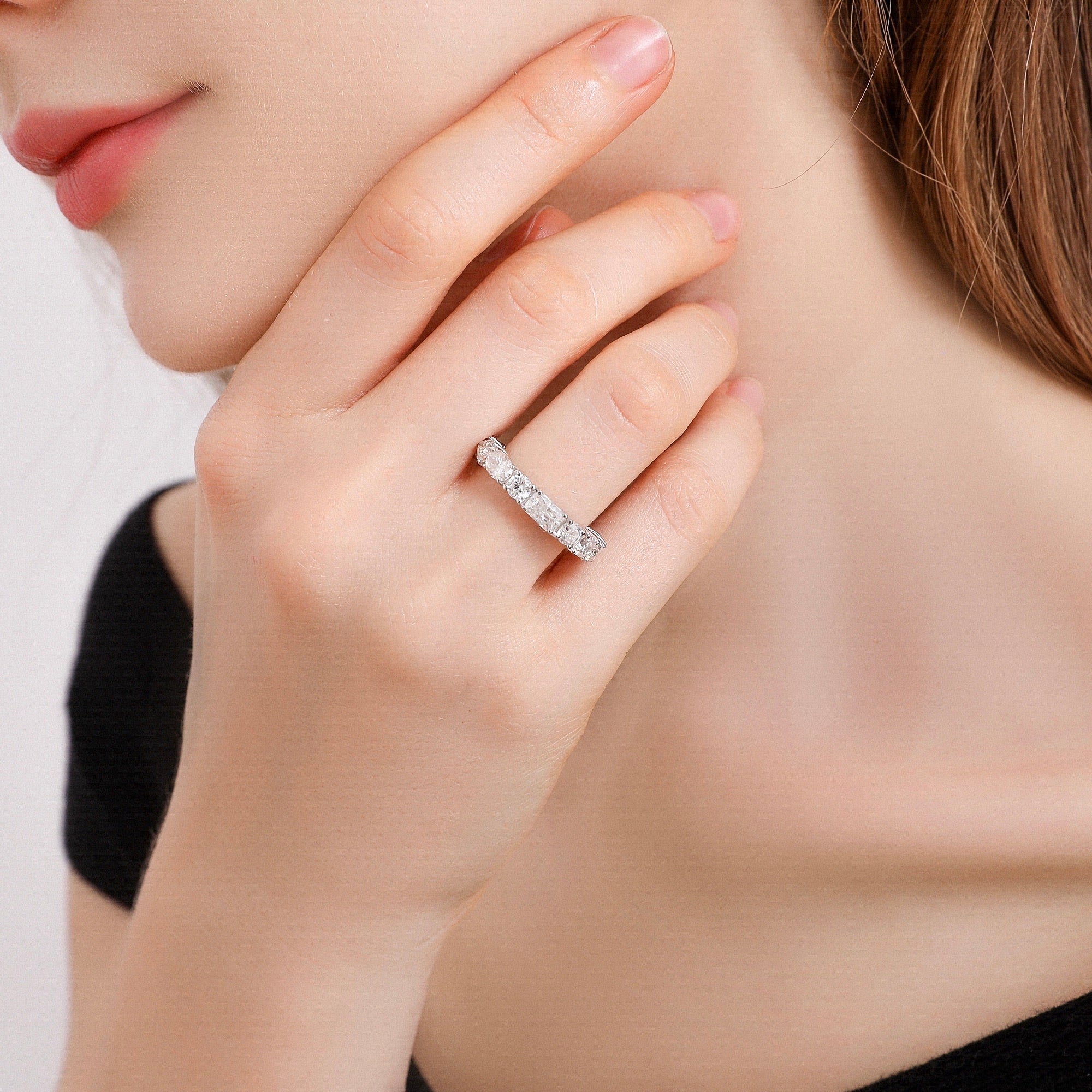 モアサナイト:ラウンドカット、オーバルカット、プリンセスカット、エメラルドカット、ペアシェイプ、ハートシェイプ、マーキスカット、ラディアントカット、アッシャーカット、クッションカット合計約4.0カラット(合計カラット数はサイズによって前後します)