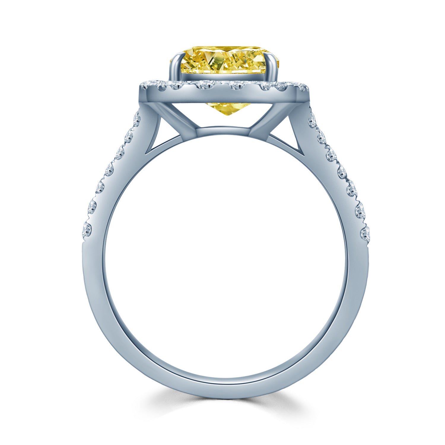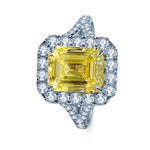 【即納】イエローモアサナイト エメラルドカット ヘイローY字アーム リング RI359
