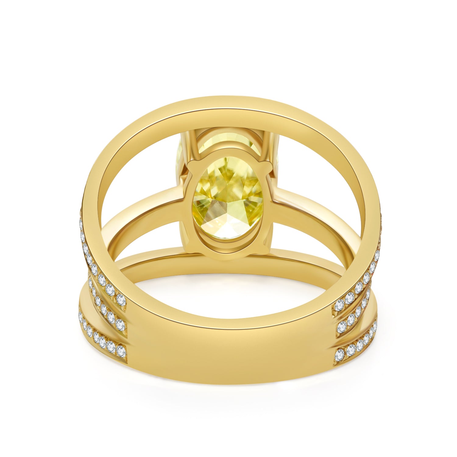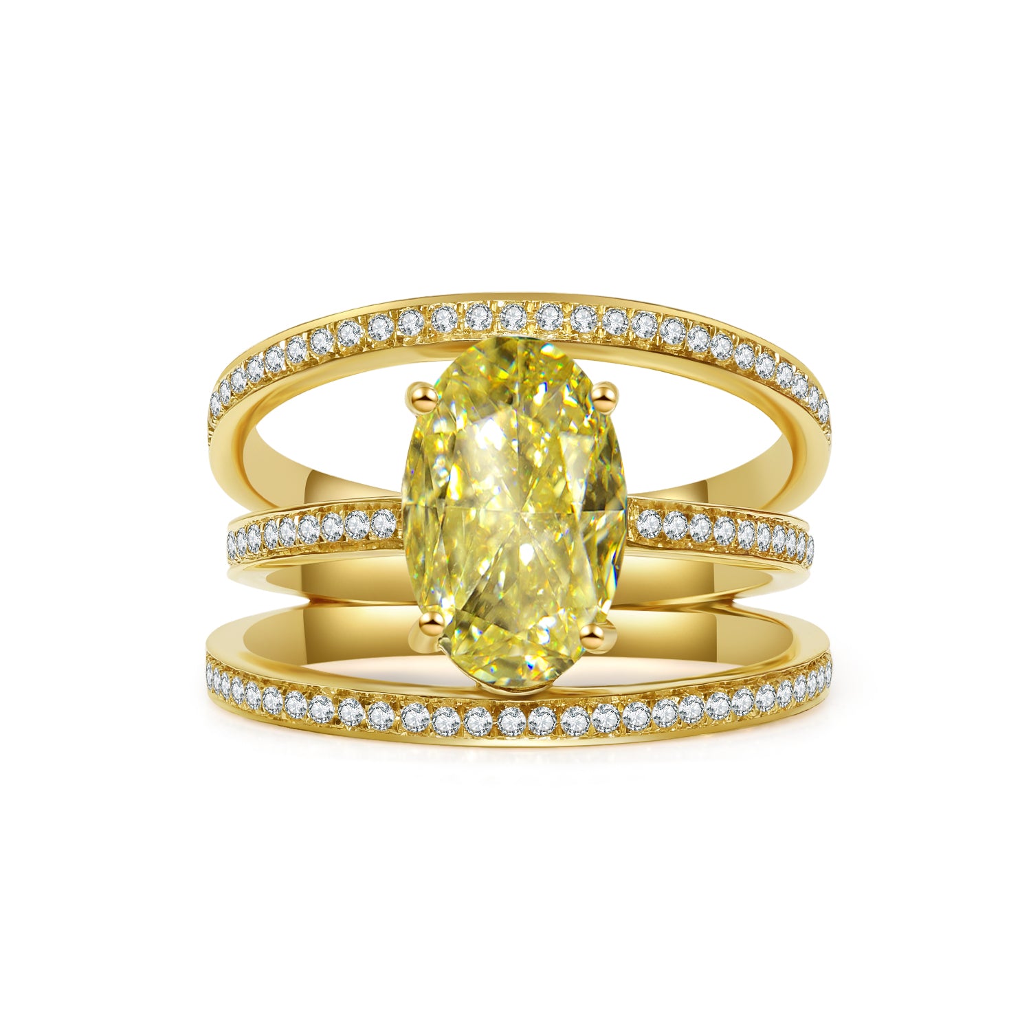 オーバルカット イエローモアサナイト トリプルアーム リング RI393YG