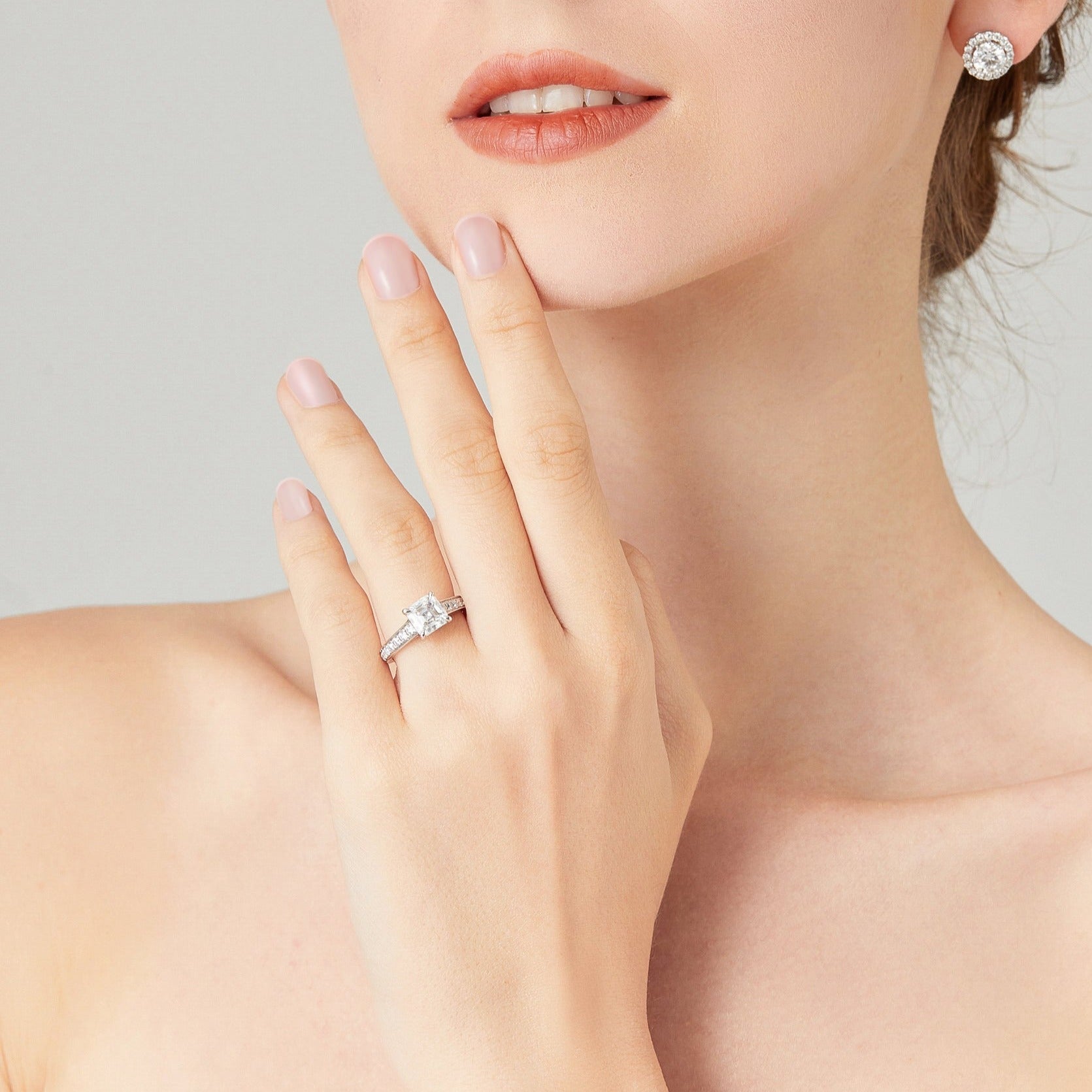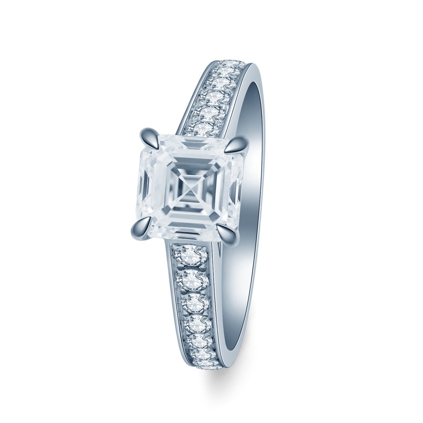 センターストーン:アッシャーカット、モアサナイト0.5〜3.0カラットよりお選びいただけます。