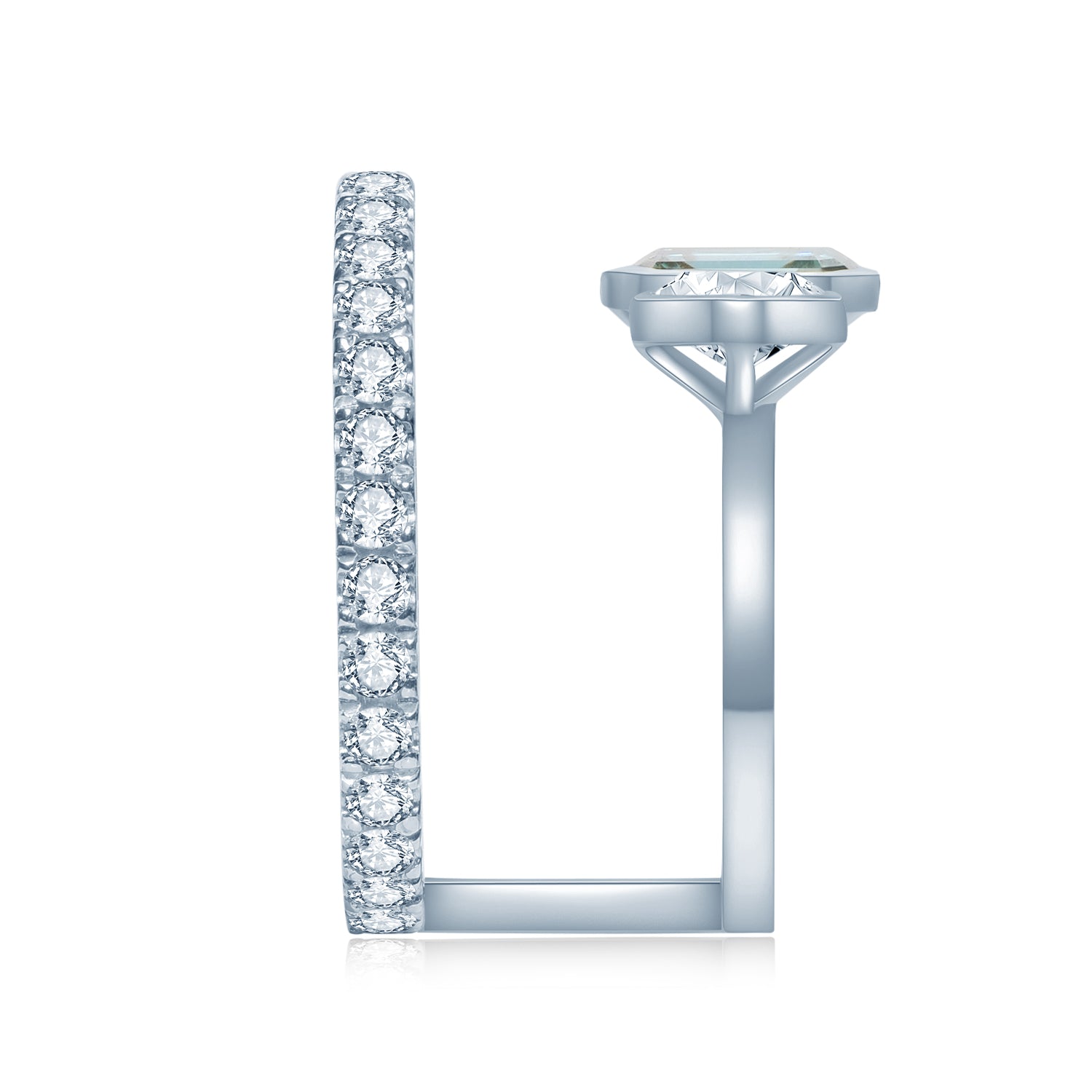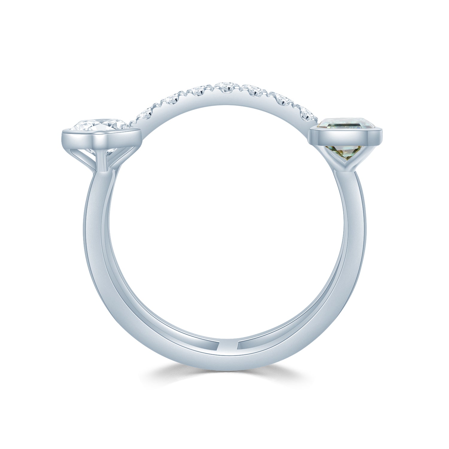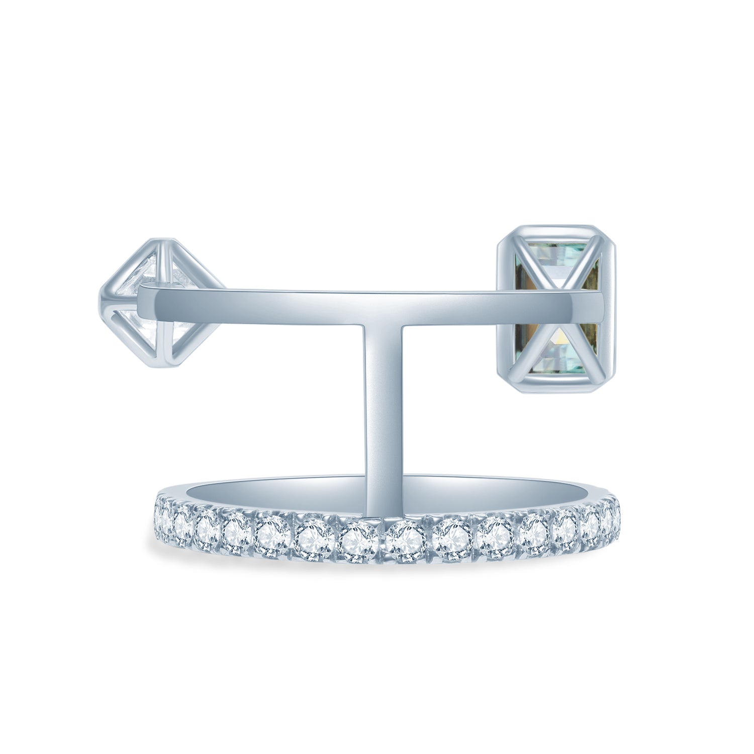 モアサナイト:エメラルドカット、グリーンモアサナイト0.5カラット、アッシャーカット、クリアモアサナイト0.3カラット