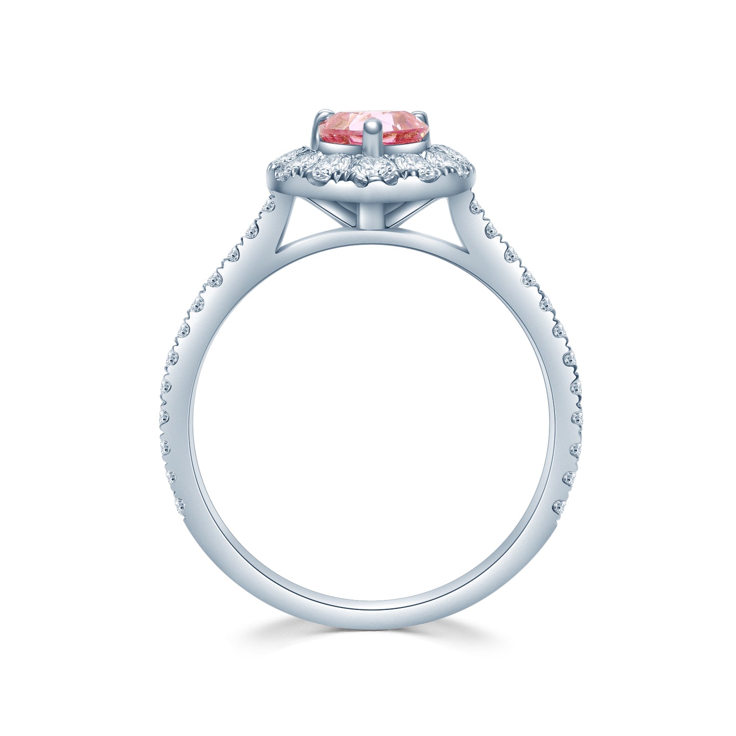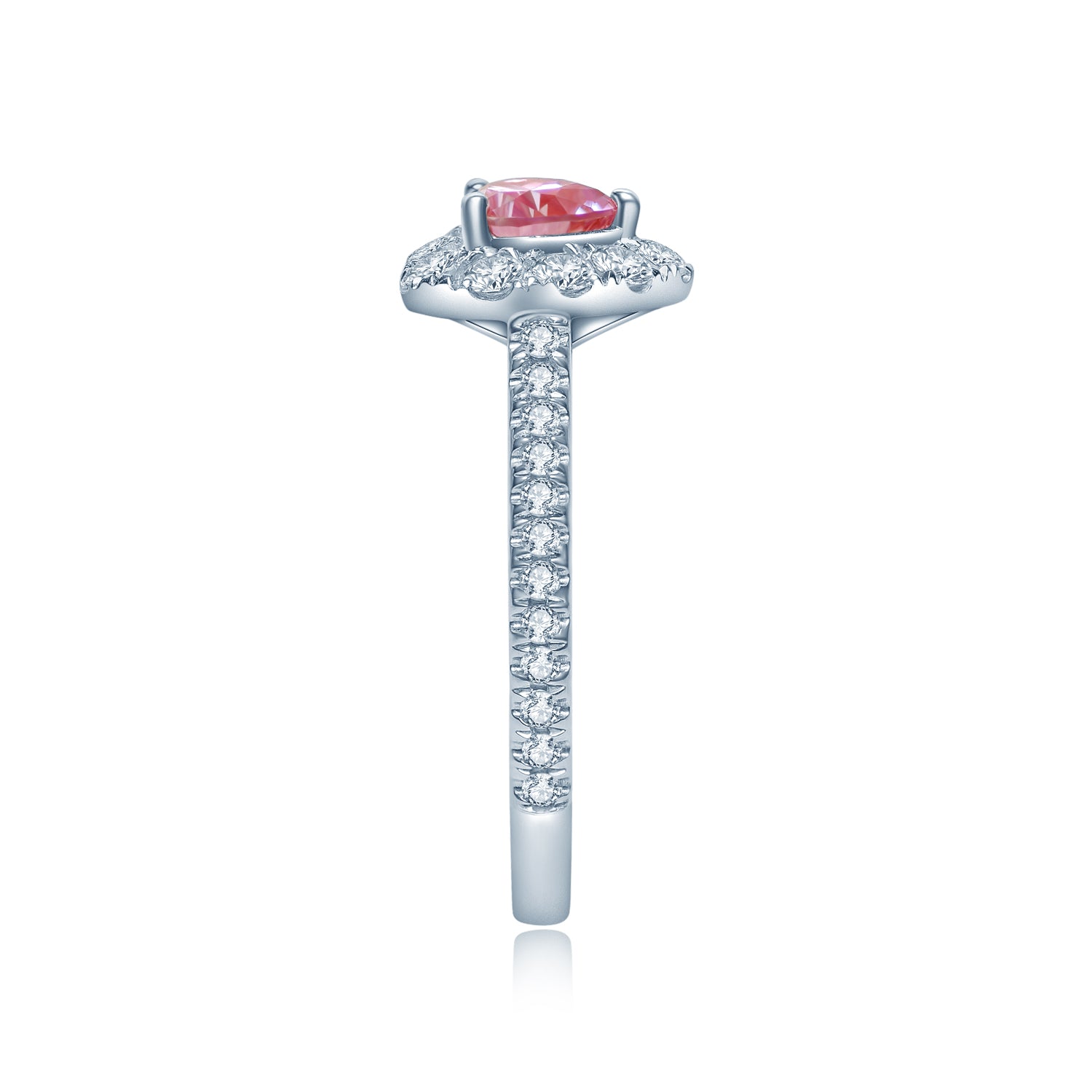 センターストーン:ハートシェイプ、ピンクモアサナイト0.5カラットまたは1.0カラットよりお選びいただけます。