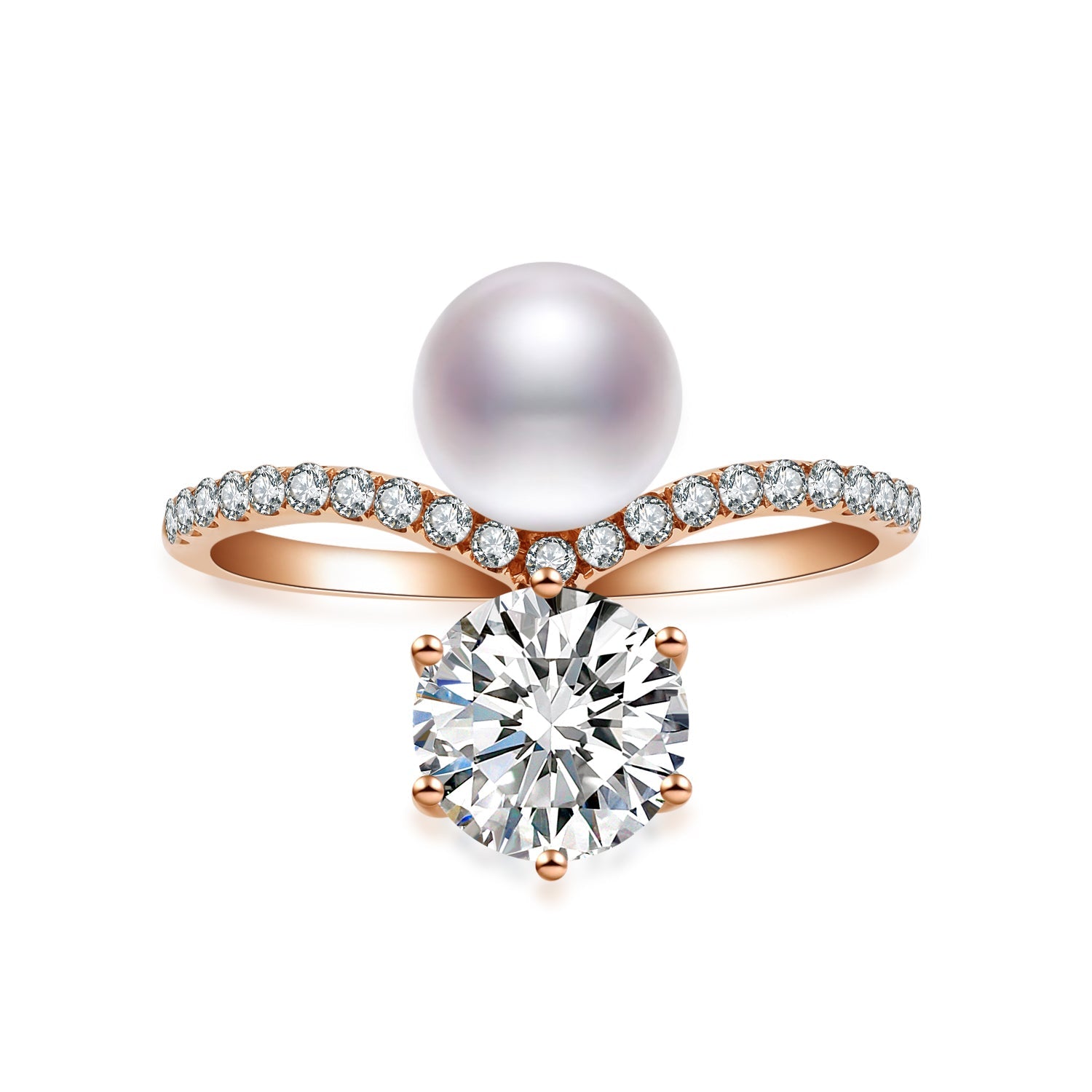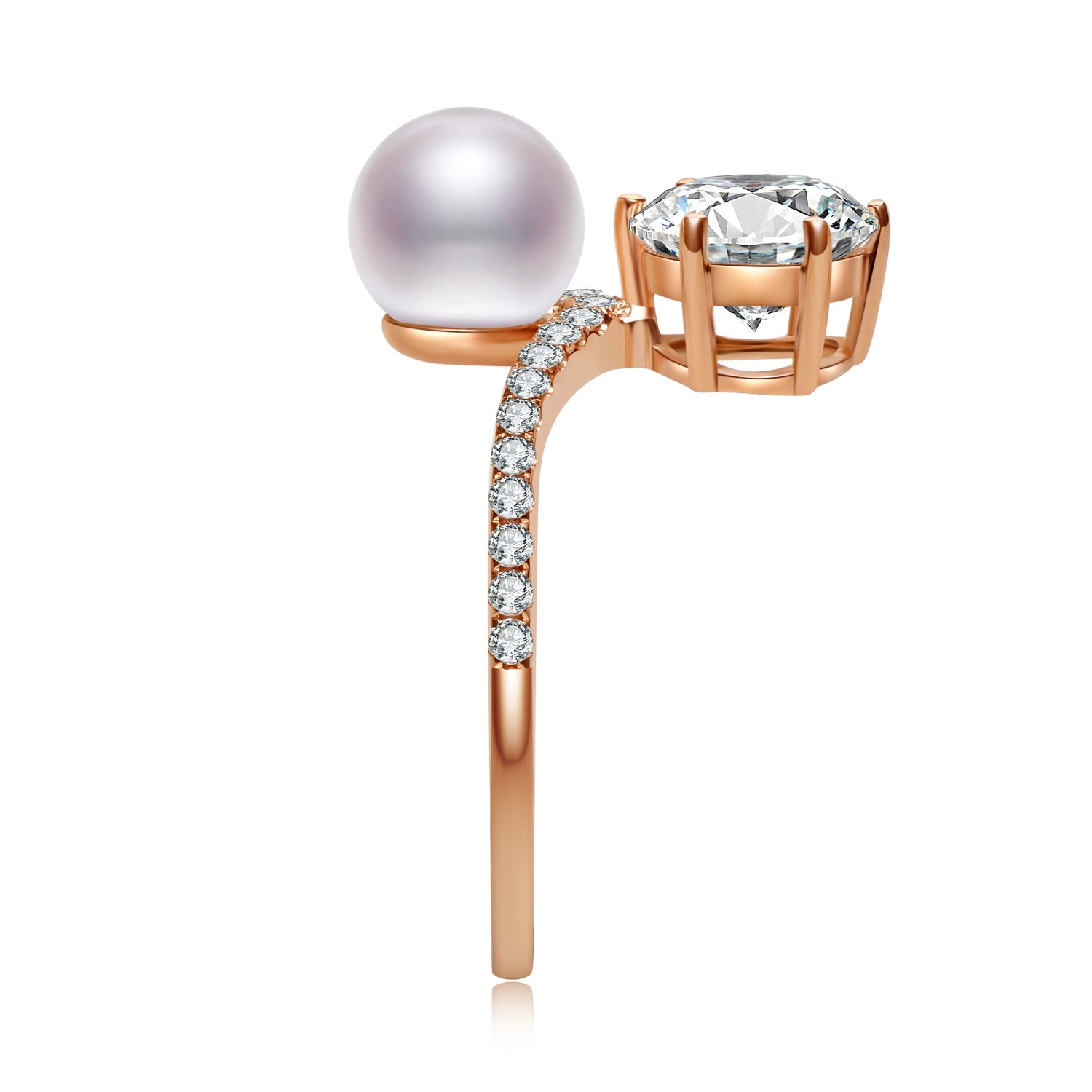 【即納】V字 アコヤパール ラウンド ハーフエタニティ リング RI385PG